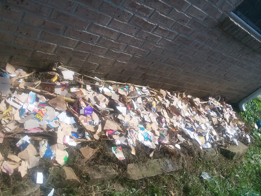 Next we went for more cardboard (but broken up so it will break down faster). We want the bottom layer to go slower so it should be thicker, but this one isn't a weed barrier. At this point it looked kind of like... well a trash bin, but I promise it will get better. Also, remember it could be any of the brown ingredients... I just happen to have hoarded a lot of cardboard.
